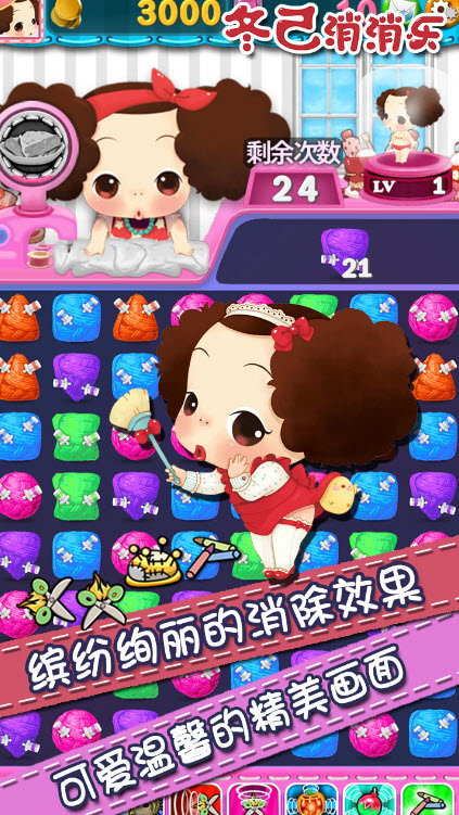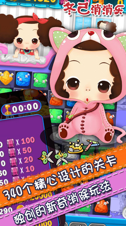 冬己消消乐是一款超可爱Q萌的消除类游戏,通过游戏收集时尚服装是游戏内的一大亮点。玩家将扮演游戏内的超龄儿童。游戏内玩家需要帮助冬己(ddung),实现她的小愿望,完成“世界巡回时装展”,并用独具匠心的服饰搭配迎接消除“毛线团”的任务挑战。画面精致可爱,还有冬己萌萌的配音;主线关卡丰富,另配有迷你小游戏,玩法多多,俊男靓女们,福利到啦!