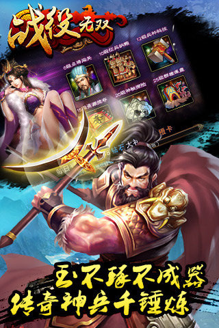 战役无双是一款史诗级的策略战争手游,游戏以全新的战争策略,气势恢宏的场景刻画,为您展开“三国”时期错综复杂的历史长卷。数百员猛将、几十类特色兵种、上百种特色技能结合强大的装 备系统,超经典霸气传世名将,超酷炫狂拽三国神兵,超激烈震撼史诗国战,超完美动作策略卡牌,将古代战争策略表现得淋漓尽致!