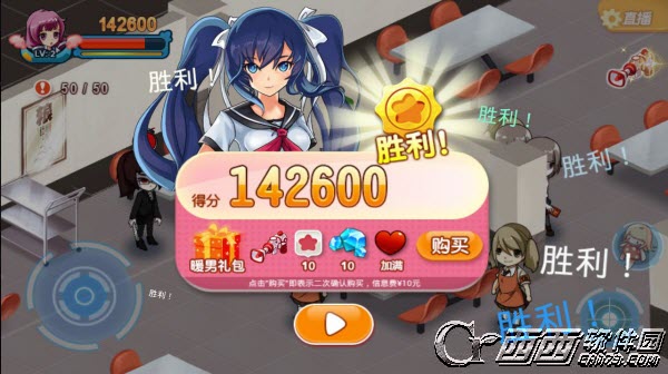 一进入游戏,漫天的弹幕直接让小编吓尿,其实小编一直不是很喜欢弹幕,因为它非常容易分散注意力,所以果断关闭,游戏主界面就有关闭设置,不过如果你喜欢弹幕的话也可以看着弹幕游戏,游戏是根据二次元同名动漫改编,当然游戏的二次元元素是必不可少的,很多二次元玩家肯定非常喜欢,而西西,嘿嘿,当然是奔着看妹子来的,游戏是采用射击跑位的玩法,不过玩起来非常考验手速啊,需要你在移动的同时不停的点射击,不然不要几秒钟你就会被僵尸包围,而且游戏有点坑的一点就是无处不在的内购,说实话大人可能不会中招,不过如果你家有个熊孩子的话,建议还是飞行模式玩吧。