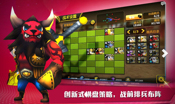 你可以扮演最强团长,和你的酷萌军团一起推倒邪恶的大魔王!是集火?还是迂回战术?战斗前49格棋盘式布阵,可以让你任意调配兵力。你准备好打造自己的无敌军团了吗?