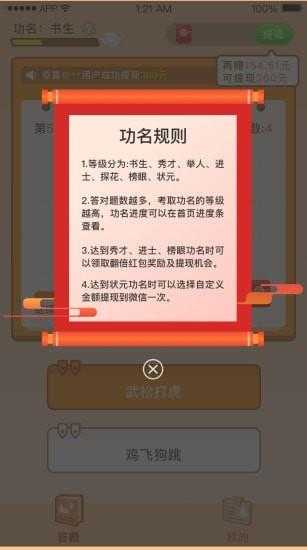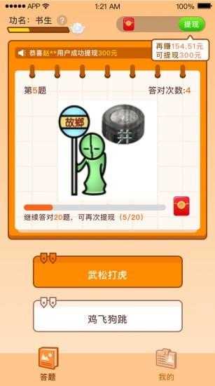 是一款十分刺激的红包答题挑战游戏。在这里有着丰富有趣的成语挑战关卡之中展现你强悍的答题实力吧,展现你的丰厚成语词汇积累量吧