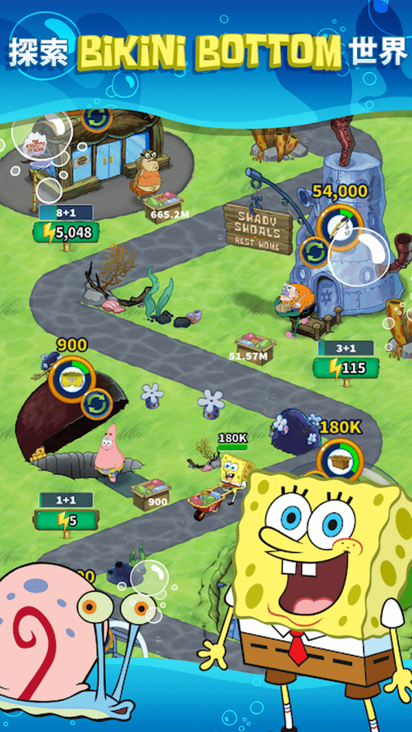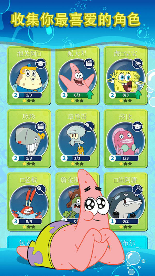 3、海绵世界游戏里,玩家可以收集喜爱的角色,带领它们一起踏上全新的闲置冒险之旅。