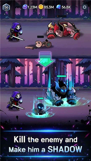 1、闲置暗影骑士中玩家会化身勇敢的骑士,每打扮一个敌人,他们将化身你的影子哦。