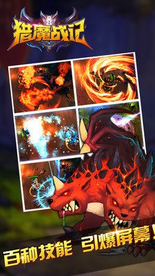 猎魔战记是一款欧式风格的3D SRPG实时对战手游,Q版的人物形象,最大化精度的模型和粒子特效,精心淬炼出一款MOBA与RPG完美结合的史诗级传奇游戏! 实时角斗场真人实时匹配战斗!全服一起对抗远古魔王!抛开烦人虚拟按键,全新的游戏操作方式!点击屏幕,自由移动,英雄想去哪就去哪;拖拽技能,自由施放,深受大量MOBA和RPG玩家喜爱。 风骚走位秀全场,残血补兵抢人头!炫酷的技能效果,史无前例的指尖操作,给你最佳的游戏体验,万人屠魔!就差你了!