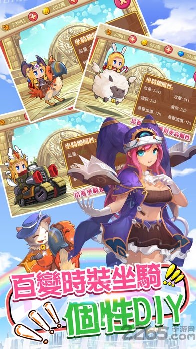 2.游戏提供了数十种精美时装以及坐骑,所有的英雄和坐骑在养成到一定阶段时,形态都会发生改变,定制只属于您的个性冒险小队!
