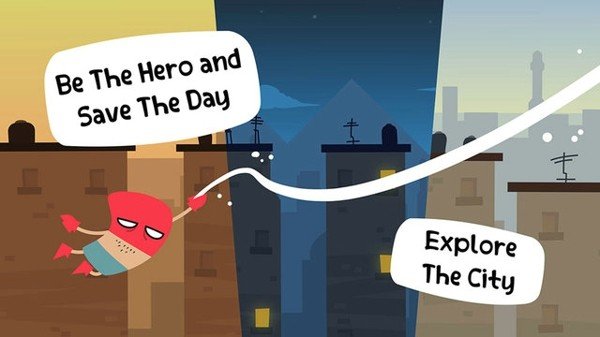 玩家点击屏幕控制主角往斜上方发射一束蜘蛛丝,当蜘蛛丝接触到屋檐时主角会迅速收缩蛛丝使自身往前晃荡,松开屏幕时,蛛丝与屋檐脱离。玩家通过这种方式,控制主角在高空前进。