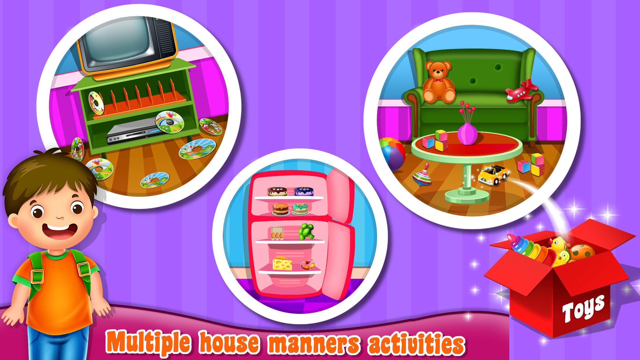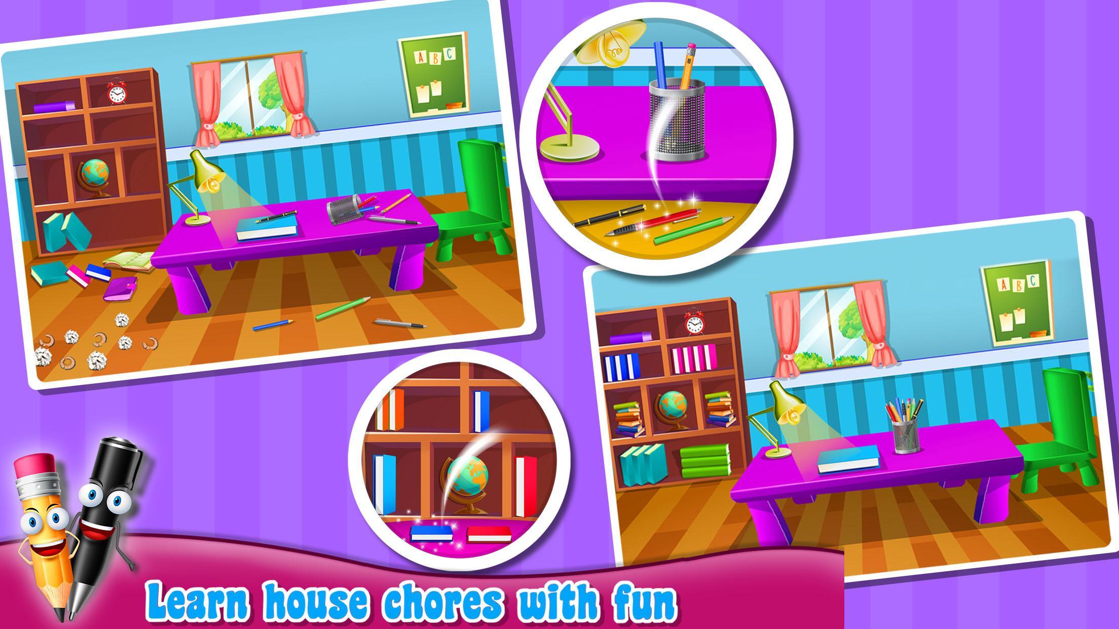 学习家庭礼仪LearningHouseManners是一款休闲益智教育类游戏,孩子们可以在游戏中学习房间的清洁打扫,从每个房间开始,先把物品放置到正确的位置,再使用清洁工具清洁垃圾和灰尘,学习家庭清洁礼仪。