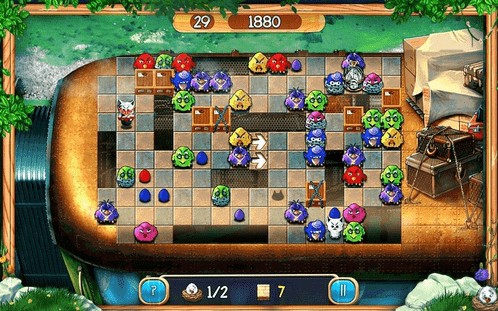 50多个游戏关卡,通关的要求不同,想要拿到金蛋必须满足特定条件,12个场景,从屋顶开始,一路辗转到田野、游泳池等等,,对逃跑的猫咪围追堵截。
