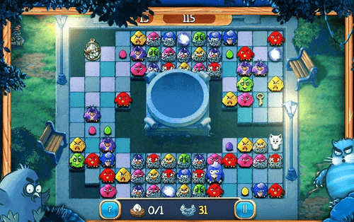 6种不同的敌人会随机出现并阻碍消除的进程,不同敌人应对方法不同,比如普通猫用两只同色的鸟就可以带走,学者猫就必须用三只鸟才行。
