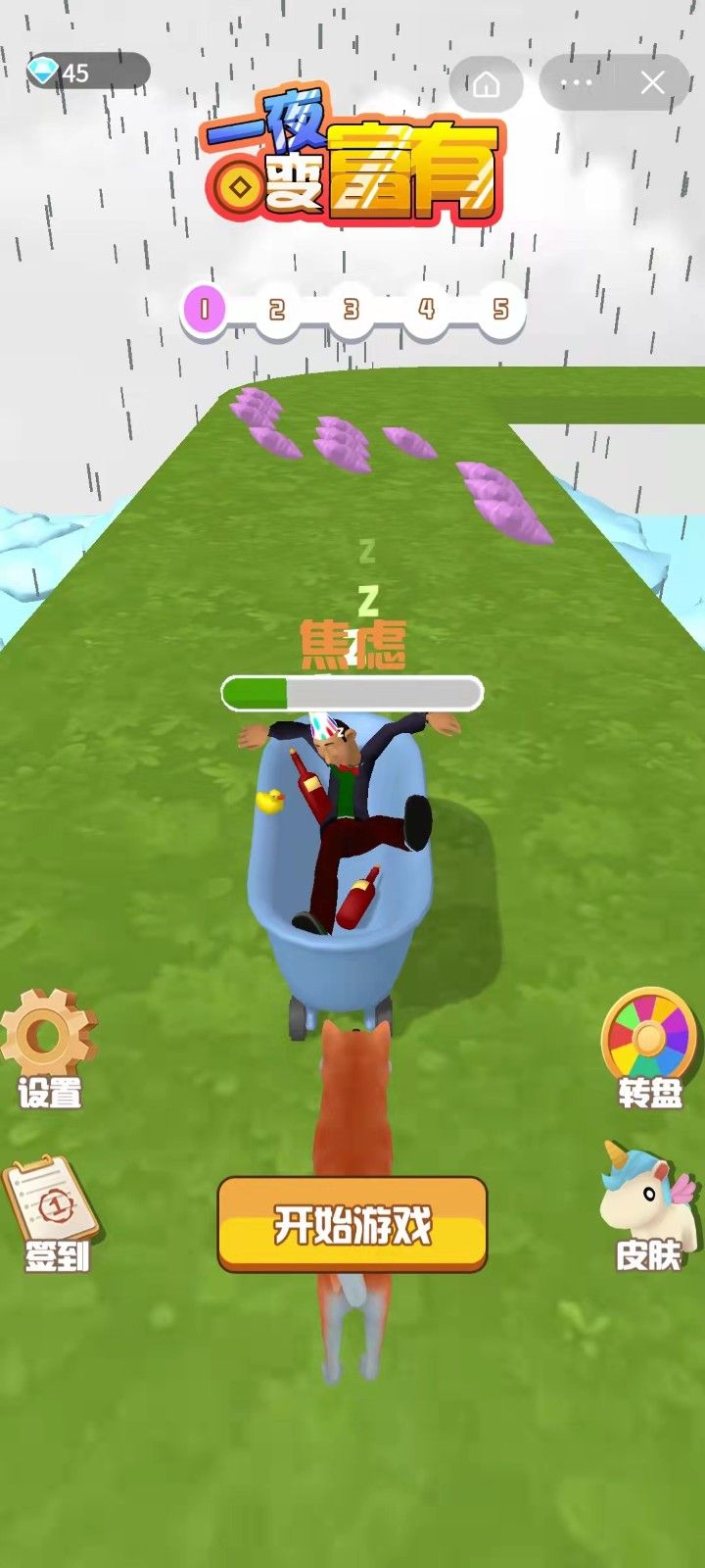 一夜变富有游戏是一款非常好玩的跑酷闯关题材的游戏,游戏有非常多的关卡,玩家可以尽情的挑战闯关,玩法非常的趣味,有很多的道具可以慢慢的解锁使用,在你跑酷的途中可以收获非常多的金钱,注意躲避障碍物保证你睡眠,这样你可以在睡梦中获得更多的金钱。