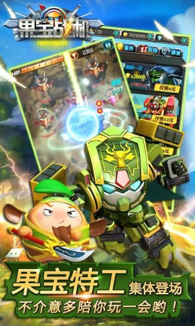 果宝战机2016是一款以太空机甲战斗为背景的RPG射击类手游果宝机甲,玩家可以在游戏中体验全新的果宝机甲,超级萌萌哒的角色等你来体验,游戏的背景源于动漫果宝特攻,归位。