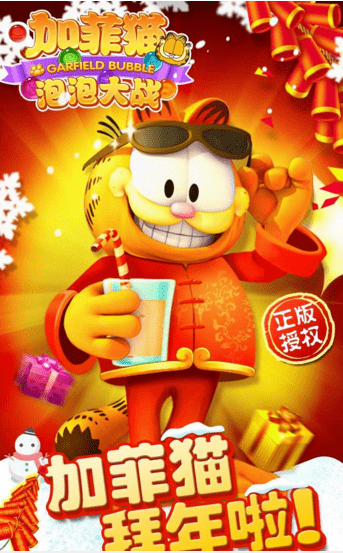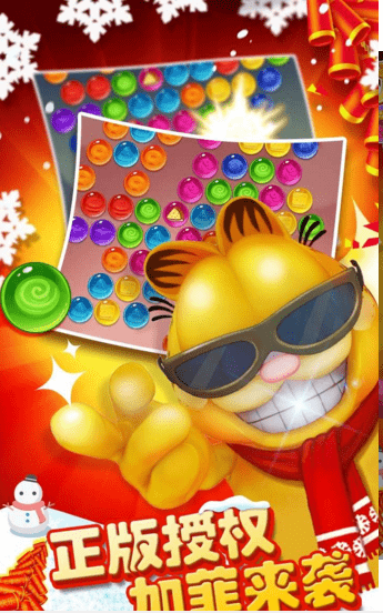 加菲猫泡泡大战贺岁版是由中青宝发行的一款够Q够萌蠢的泡泡龙手机游戏让玩家能够全新体验,经典三消类手机游戏,炫酷的游戏画面和游戏内容,赶紧来本站下载吧。