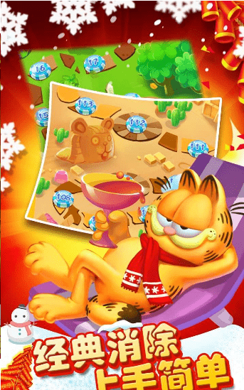 经典三消结合加菲猫的动漫形象,给人Q萌的体验。
