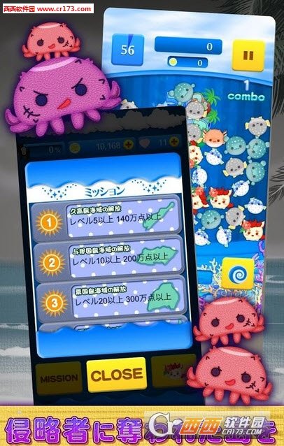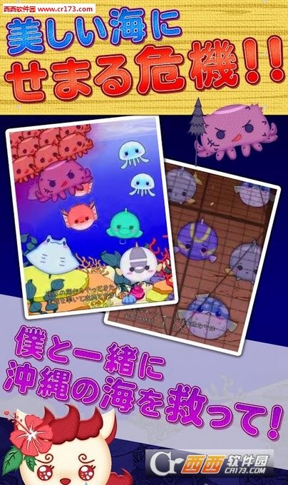 滚滚海洋 うみころ是一款以海洋生物为主题的休闲游戏。玩家在游戏中将会来到日本冲绳的海边,在这里帮助当地的特产海洋生物们驱逐入侵的章鱼。玩家可以通过将靠在一起的鱼类连在一起消失,从而通过关卡。游戏中有多道不同难度的关卡,玩家可以通过突破关卡来收集各种各样的海洋生物。