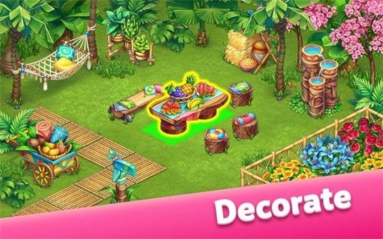 建造你的农场:在炎热的赤道阳光下种植和收获庄稼,采摘多汁的水果,养一整群鸡,将小牛犊培育成一群奶牛。