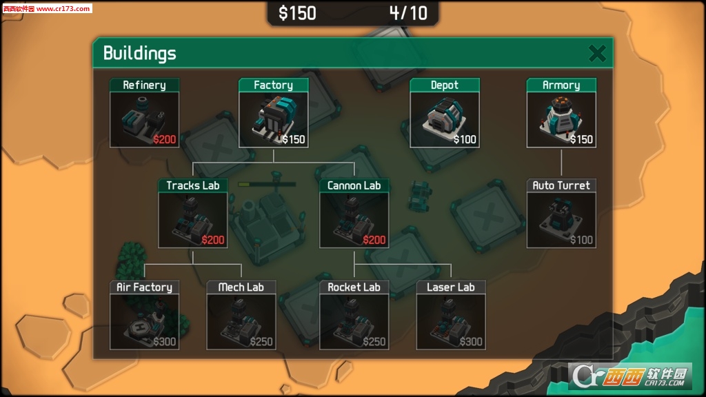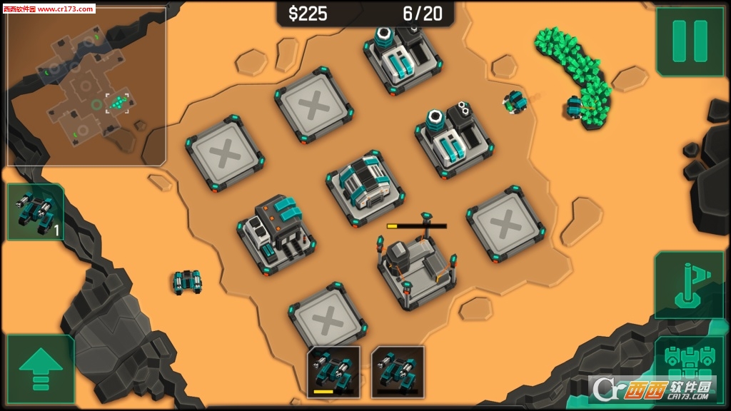 机器战争是一款类似于星际争霸的即时战略游戏,玩过RTS特别是星际的朋友上手会很容易,玩家在每一盘游戏中需先建立采集点,让农民去采集矿石,扩充你的腰包里的票子,以便后续的扩张发展。然后接下来就是建造出兵建筑。本作的设定是这样的,玩家可以通过搭配战争兵器的上半部火力武器和下半身移动护甲部分来自由搭配你的武装形态。建筑相应的上下半身建筑后,即可在右下角点选相应的兵种建造啦。在操控上,双击一个单位时,可全选附近的所有对应兵种,轻击屏幕某地后即可移动到该位置。点击敌人单位进行攻击。