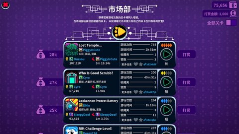 获得粉丝!将你的关卡发布到全世界,并看着你的游戏时间、尝试和粉丝积少成多。凭借强大的搜索和策展功能,崩溃制造使收集粉丝及游玩全球用户不断生成的内容变得轻而易举。
