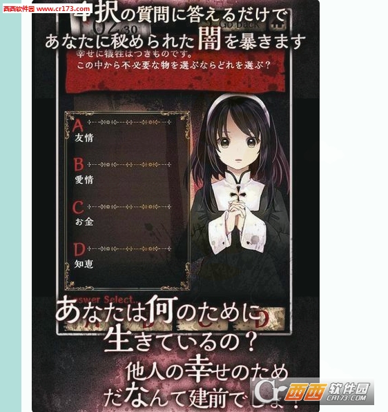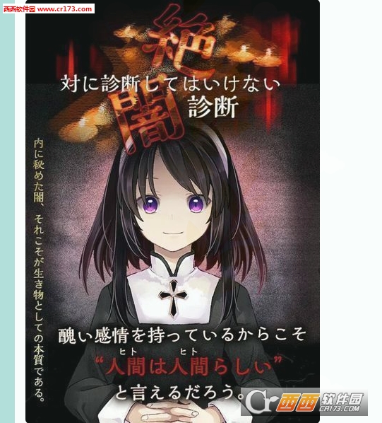 8绝对不能参与的黑暗诊断安卓版是一款来着日本的非常有趣的休闲游戏就会有意外的惊喜,然后所有的题目你全部测试完了以后,绝对不能参与的黑暗诊断安卓汉化版游戏主要是一黑暗系为风格,看上去很多答案都比较正常,欢迎下载诊断你的心理。