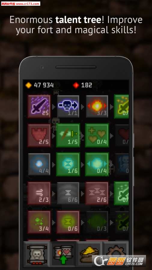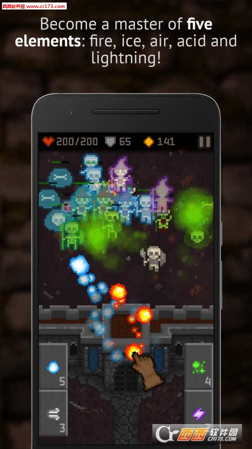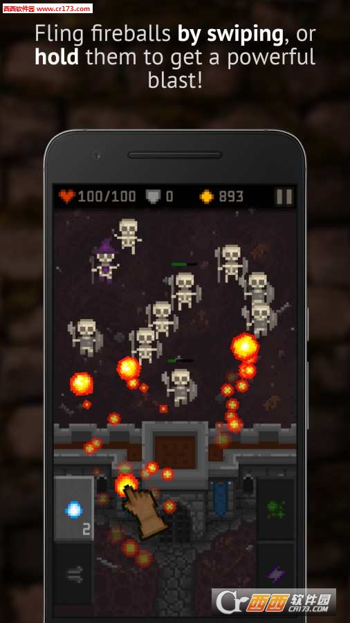 堡垒守卫是一款像素风格游戏。游戏中你将扮演守卫城堡的魔法师,面对外面不断进攻的各种骷髅大军,利用滑动屏幕释放不同的魔法来击退它们。游戏操作十分简单,点击滑动屏幕即可释放魔法,不过不同的魔法攻击效果也不同,喜欢像素风格游戏的朋友们一定不要错过!