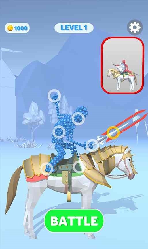 骑士装备战是一款很有趣的骑士战斗游戏,以一对一的战斗为主,各自骑上自己的马,带上你的武器在此战斗,游戏的画面虽然简约,但是战斗的时候会有一些特效处理,还有各种刀剑碰撞的声音效果,会让玩家更加沉浸哦,势均力敌的战斗也是非常刺激的。