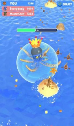 2、随着吃的东西越多,章鱼的等级就会变高。快速的成长起来;