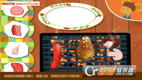 *烤肉:肉能烤,菜也能烤,但是要小心,不要烤糊了哦!糊了的食物可不能吃啊!