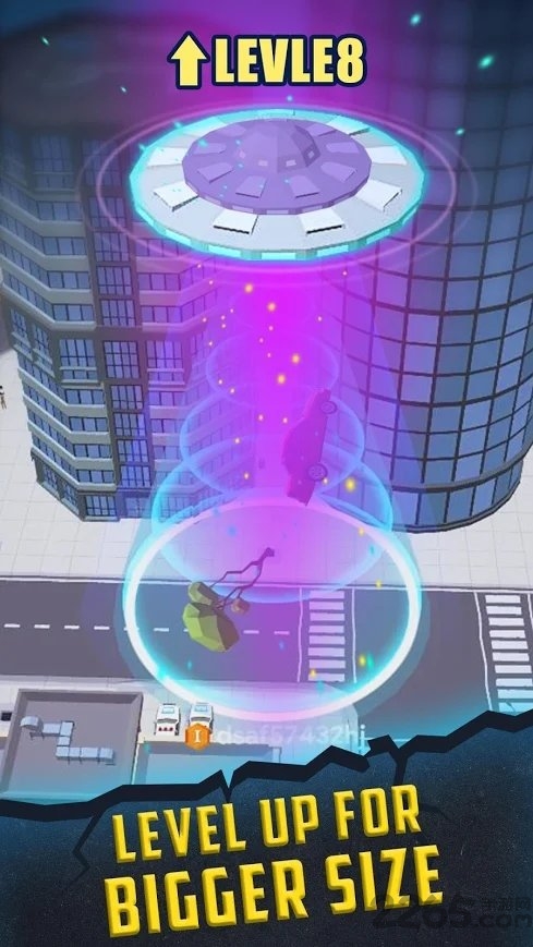 ufo.io手游中玩家将操控自己的UFO在城市里自由的吞噬,你可以控制你的UFO移动,UFO会吞掉地上比自己光束体型小的任何东西,就算是其他玩家的ufo也是可以吞掉的,吞噬东西可以获得能量不断变大,体验不断破坏吞噬的乐趣,把整个城市都吞掉吧!