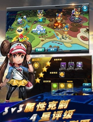 战斗系统游戏採取3V3战斗,在多隻宠物之间选出最佳阵营,应对副本BOSS。不同的BOSS带有不同的属性,属性相剋的宠物对战斗半功陪,有效帮助训练师通关获取成就勛章。