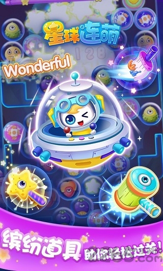 星球连萌这款游戏采用了卡通式的萌系画风,这里有众多可爱缤纷的角色等着你来消除,丰富多样的关卡设定,萌萌的宠物与你相伴,海量道具、多种模式!