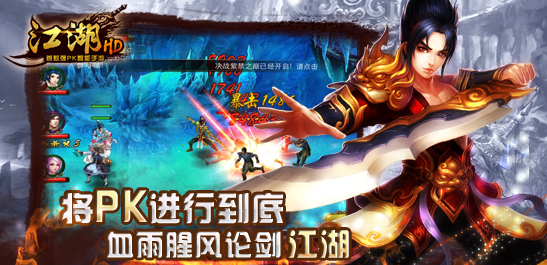 江湖HD是一款根据同名PC端网游江湖而改编的角色扮演的手机游戏,游戏中不但包含恶人谷,无量宫,封印之地等神秘副本,同时将伙伴养成、建造桃源、团队角色扮演等众多经典元素内容完美的融合,采用的全新智能化互动模块技术为玩家提供量身定制的私人江湖体验模式。采用即时战斗场景,玩家在进行战斗的时,更加身临其境。丰富动感的特效场景和副本战斗地图、炫目的坐骑和御剑、火爆的战斗场面更加爽快。