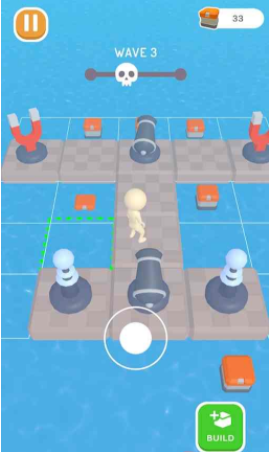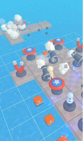 1、玩家通过滑动虚拟操作杆移动人物收集更多的战筏资源;