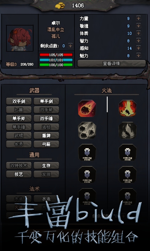 体验100多种技能,没有职业限制,创建自己的游戏风格;