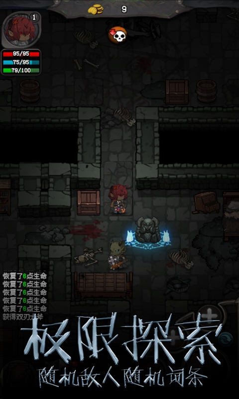 完全随机的地牢,玩家只有依靠自己的计谋与胆量,才能以最小的牺牲换取最大的收获;
