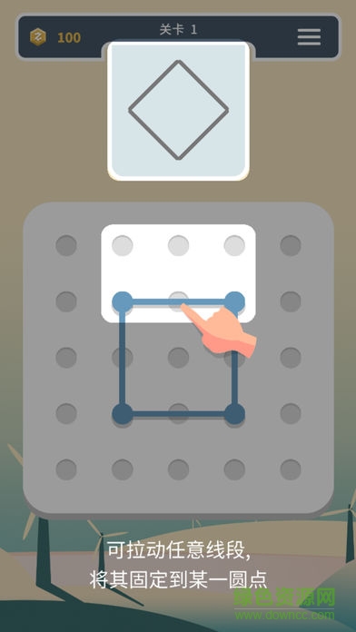 拉动任意一条线段,并固定到某一圆点,从而将其划分成两条新的线段;而新的线段又可以继续划分。如此反复,几条普通的线段就能编织出无数种奇妙的图形。有的图形看似简单却耐人寻味,而有的图形看似复杂却又富有规律。你只需要简单地观察和尝试,并加以一些思考,就能完成一个又一个有趣的关卡。