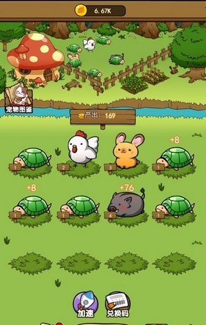 选择不同的宠物进行打工,获得不同数量的金币收入,解锁全新的宠物;
