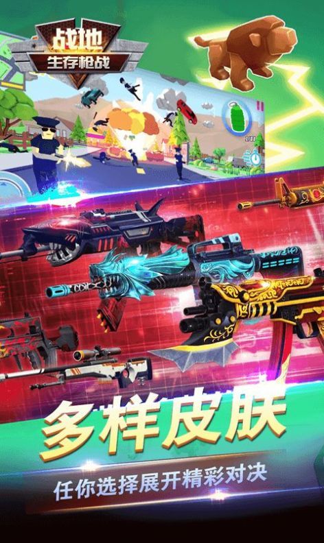 经典的孤岛求生、跳伞降落、辐射隔离,再现刺激的方块射击乱斗;