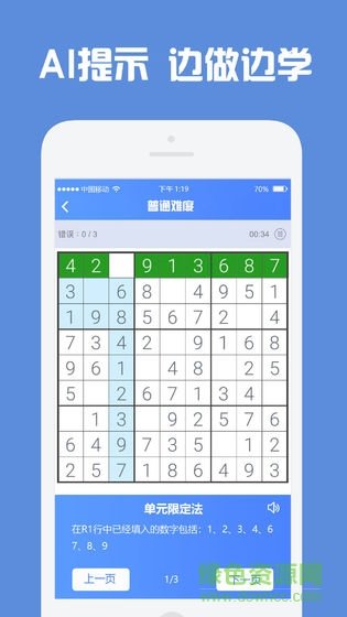 应用提供从初级到顶级的解题技巧教程,每个教程只需花1分钟即可掌握,数独从此不再烧脑。