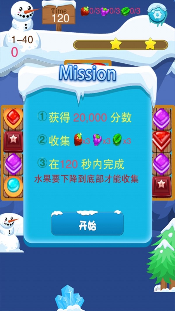 有些关卡需要收集水果,而水果要下降到底部才算收集成功。