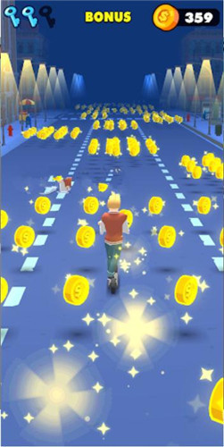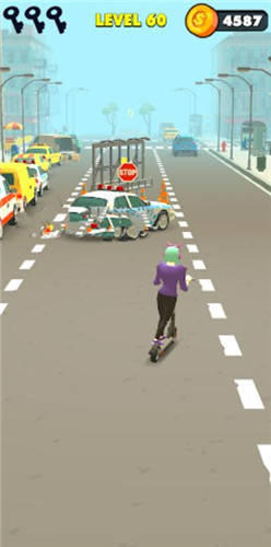 驾驶你的小滑板在这个城市的街道上进行奔驰,会遇到各种障碍物,你需要躲避它并且吃到更多的金币才能获得更高的分数