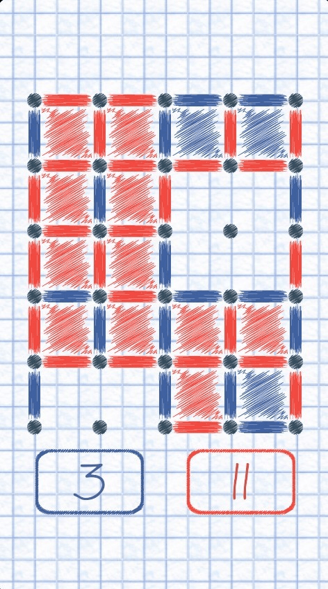 圆点与边框 Dots and Boxes!这是一款非常经典的益智与推算游戏。你与可以和AI竞技,也可以双人对抗,先围城箱子的四个框,第四笔,也就是最后一笔围框将取得此箱子。谁获得的箱子越多谁就胜利。