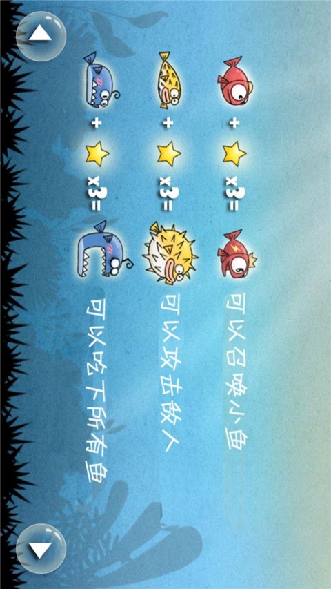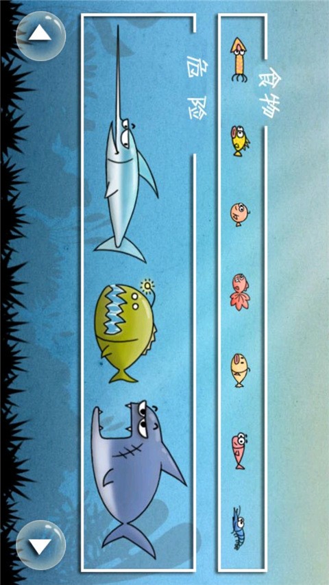 用重力感应控制你的鱼,吃掉比你小的,避开比你大的,直到慢慢长大,到能吃下所有鱼为止。为了长大,为了生存,鱼儿向前冲