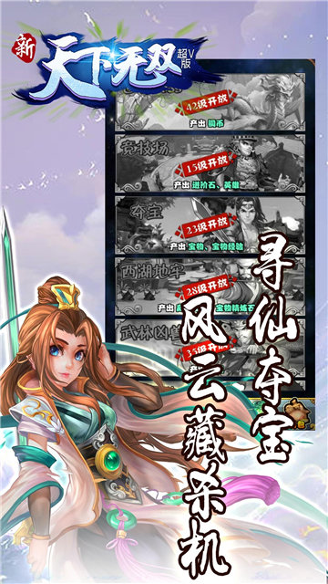新天下无双福利版是一款竖版武侠题材打造的角色扮演手游来驯幻兽坐骑一起鏖战天下,选择一名职业利用角色的特殊能力击败强力的怪物,游戏玩法非常的多样,丰富的人物养成玩法,开启超燃武侠江湖冒险体验。