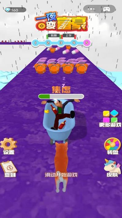 一夜变富豪游戏:解锁了不同的道具,奔跑竞速实力快速提高,关卡场景中有无尽的快乐,提升你的控制能力,灵敏反应继续冒险,通关福利有各种惊喜。激情跑酷是最流畅的,获得更多积分继续挑战您的极限,各种颜色的组合非常漂亮的视觉体验,收集道路上的无数财富,成为真正的大富翁,收集了各种奖励,一夜暴富的梦想轻松就能实现。