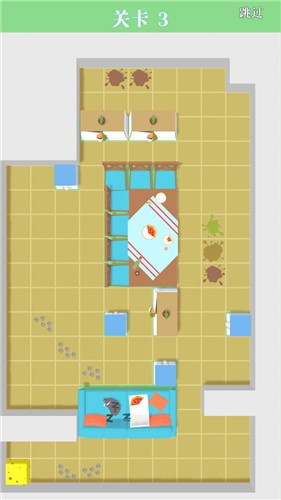 2、关卡中,障碍物的分布也可能影响到海绵的清洁轨迹,这个时候就需要玩家仔细分辨障碍物,可以想办法更换海绵清洁轨迹来躲避障碍物从而完成房间地板清洁。