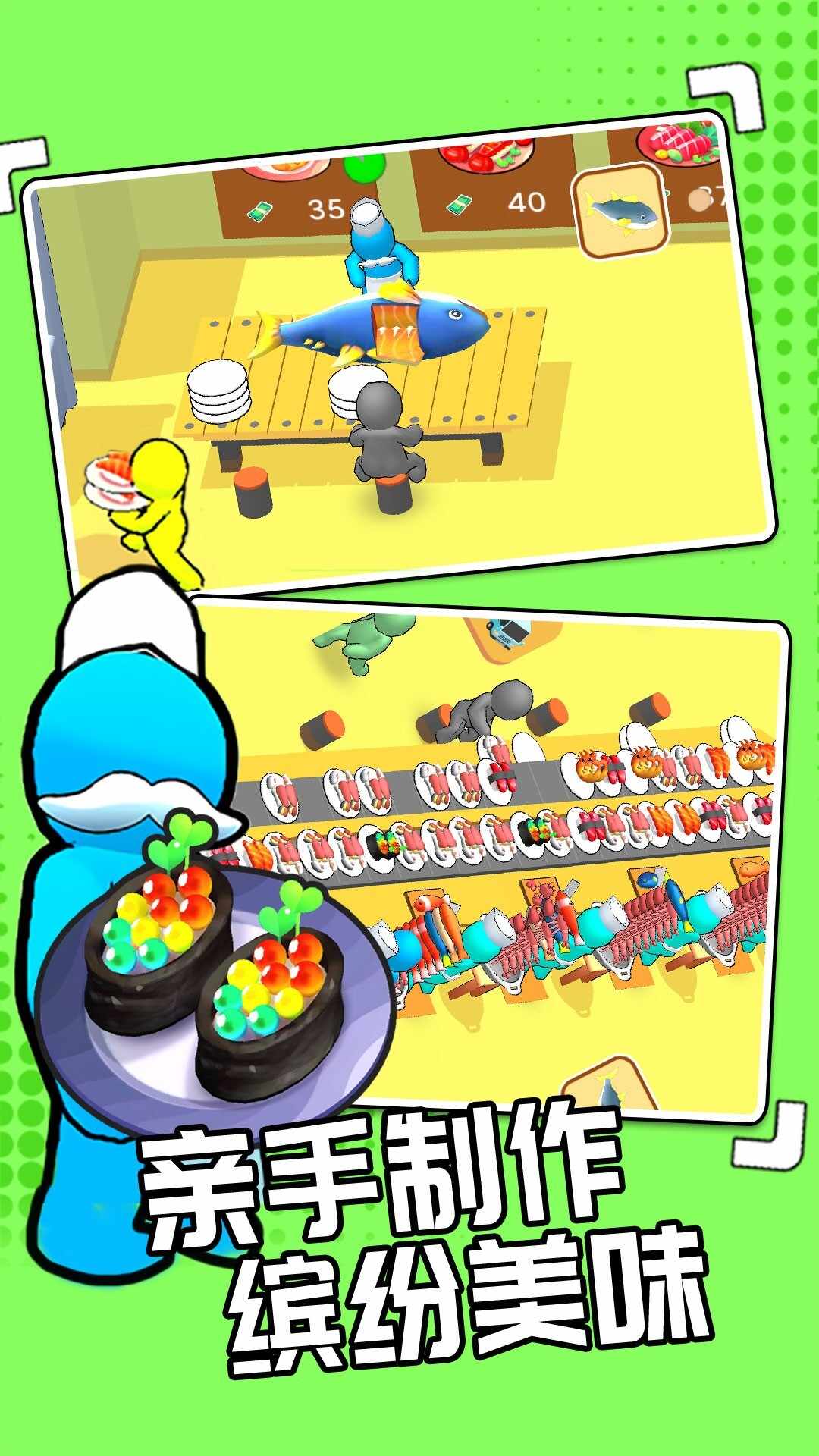 1、每日去采购新鲜食材,按照顾客要求制作成为美味寿司,获得丰厚的奖励。