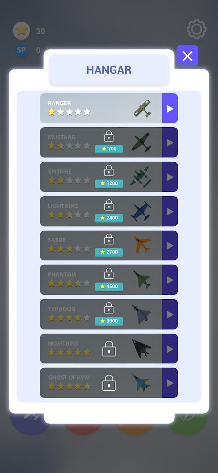 3.收集星星并使用它们,购买和升级新飞机以提高作战性能。