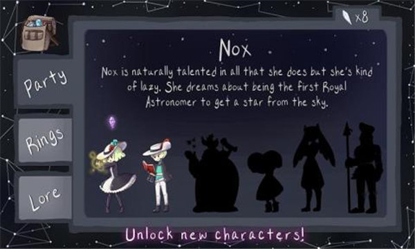 这是一款具备休闲风格的解谜类游戏,玩家们将会在游戏中解决一系列的谜题,并且揭开诅咒,同时过程中他们还将遇到魔法的飞行帽和古老的树灵等等, 玩家必须不断地改变自己的思维来解决新的难题的途径。每个世界都呈现了改变谜题的规则的新机制。有BOSS战,谜语,解开传说和秘密。