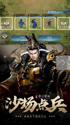 玩家在游戏内建立自己的营地,不断的升级,收集各种名将来进行培养,率领大军攻略侵占其他的城池,扩充自己的势力,最终在乱战当中成就霸业。