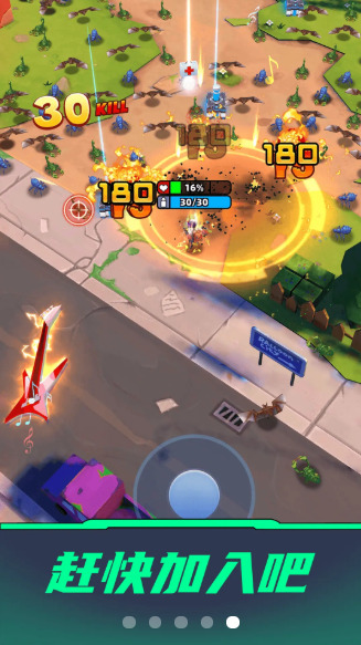 1、用户可以控制角色进行移动和转向,角色会自动锁定附近的敌人进行射击。