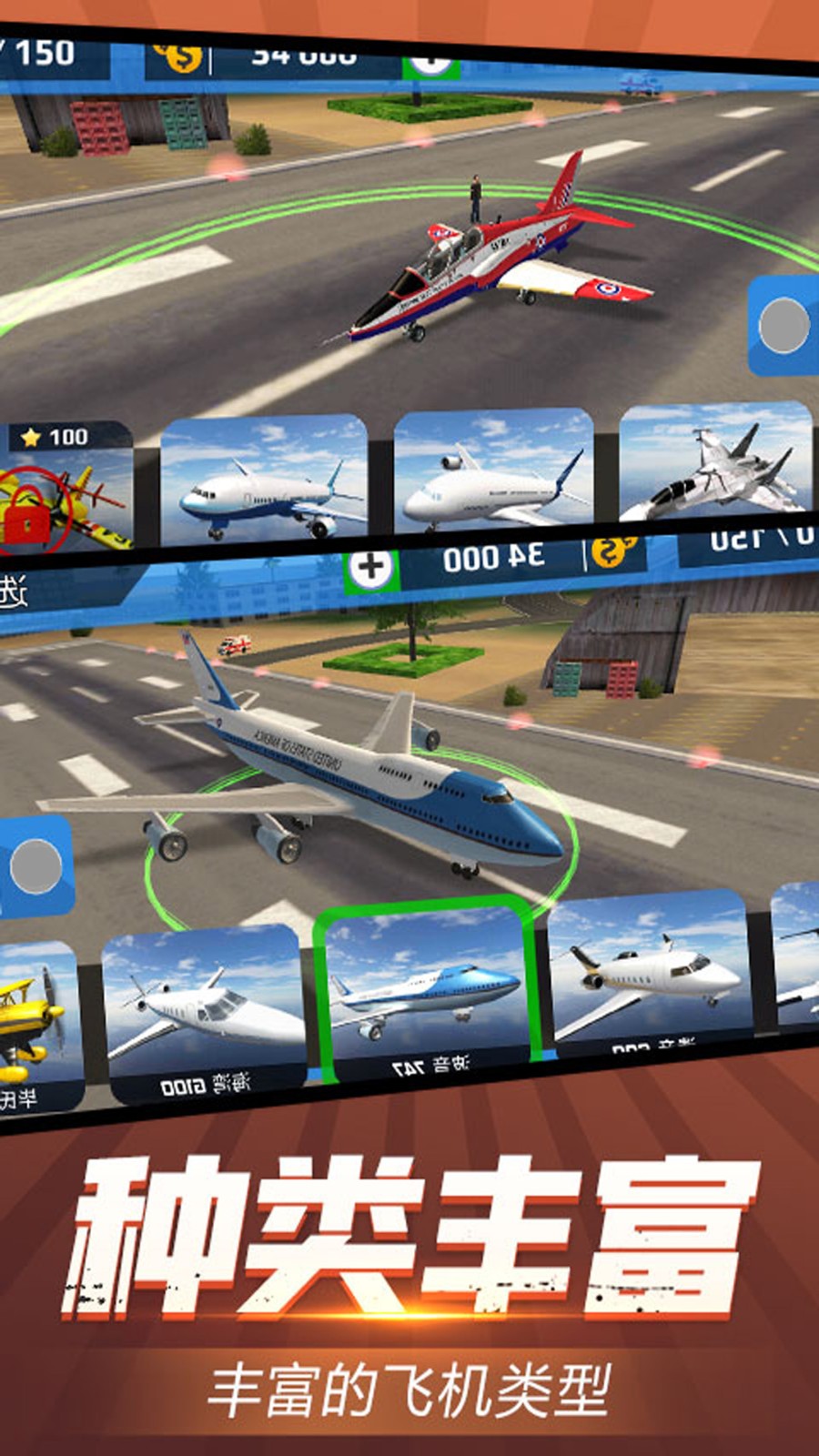 2、不断升级自己的飞机,解锁更大,更快的客机,增加你的收入。